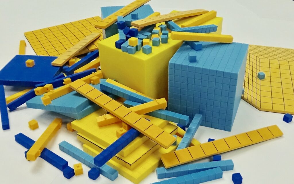 Manipulatives have also become popular. Students take brightly coloured blocks of ones, tens, and hundreds and pile them up or break them into groups according to the problem, and then they count what is created. However, when shown a problem like 15 divided by 3 = ?, they are stumped. No one shows them how to do long division, and while they can divide the groups into smaller groups, what will they do when they no longer have a set of manipulatives? They are allowed to use a calculator, but it does not help them understand how numbers work together. Formulas are torture to them.
